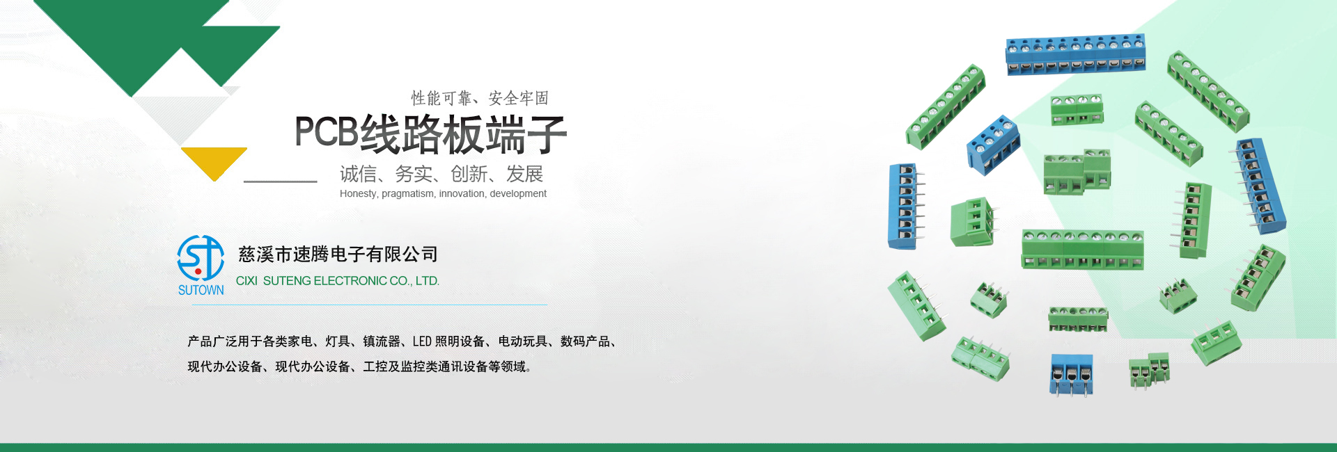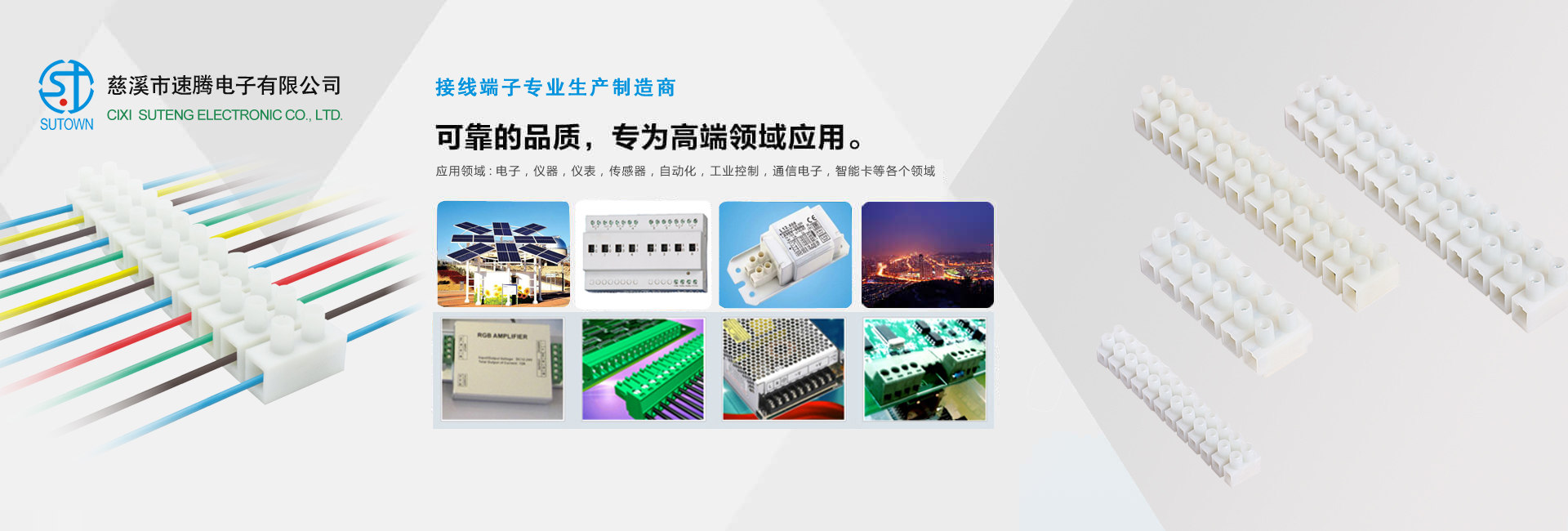 慈溪市速騰電子有限公司,是專(zhuān)業(yè)生接線(xiàn)端子生產(chǎn)廠(chǎng)家, 主要產(chǎn)品包話(huà):貫通式接線(xiàn)端子;LED燈具端子;貼片端子;快速接線(xiàn)端子;插拔式接線(xiàn)端子;柵欄式接線(xiàn)端子;PCB接線(xiàn)端子;免螺絲式接線(xiàn)端子;LED電源接線(xiàn)端子;電氣接線(xiàn)端子;各類(lèi)接線(xiàn)端子臺(tái);歐式插座;撥碼開(kāi)關(guān);等各類(lèi)連接器。