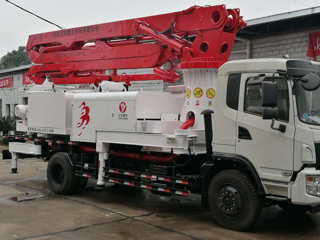 混凝土泵車(chē)也稱(chēng)為臂架式混凝土泵車(chē),其型式定義為:將混凝土泵和液壓折疊式臂架都安裝在汽車(chē)或者拖掛車(chē)底盤(pán)上,并沿著臂架鋪設(shè)輸送管道,終通過(guò)末端軟管輸出混凝土的一種機(jī)器。由于臂架都具有變幅、折疊和回轉(zhuǎn)功能,可以在臂架所能及的范圍內(nèi)布料。