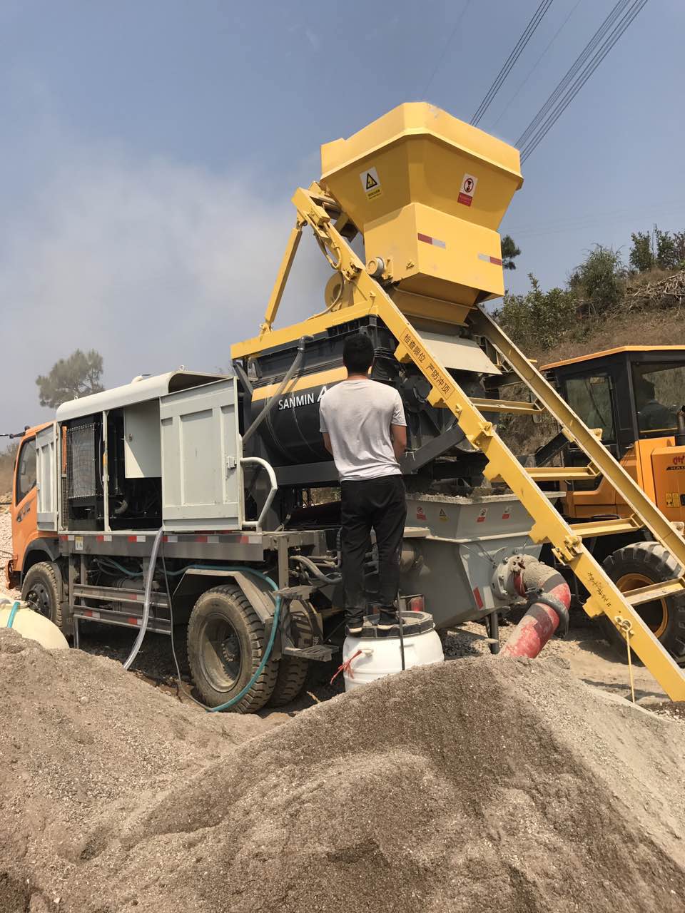 我以前在施工現(xiàn)場(chǎng)跟著承包人在工作上很辛苦,后來過一段時(shí)間后,自己組建了一個(gè)工程隊(duì),成為了承包人,知道在施工現(xiàn)場(chǎng)工作很辛苦,特別是炎熱的一天,又熱又累,很辛苦工地多的時(shí)候忙得不可開交。 朋友提議買一臺(tái)混凝土攪拌設(shè)備。 雖然花錢,但能輕松,工作也很快!后來我選擇了湖南三民重科的混凝土攪拌泵車。 這臺(tái)機(jī)器可以一邊攪拌一邊搬運(yùn)混凝土,效率也很快,更重要的是,我的工作人員工作不那么辛苦,也可以委托更多的人工作!