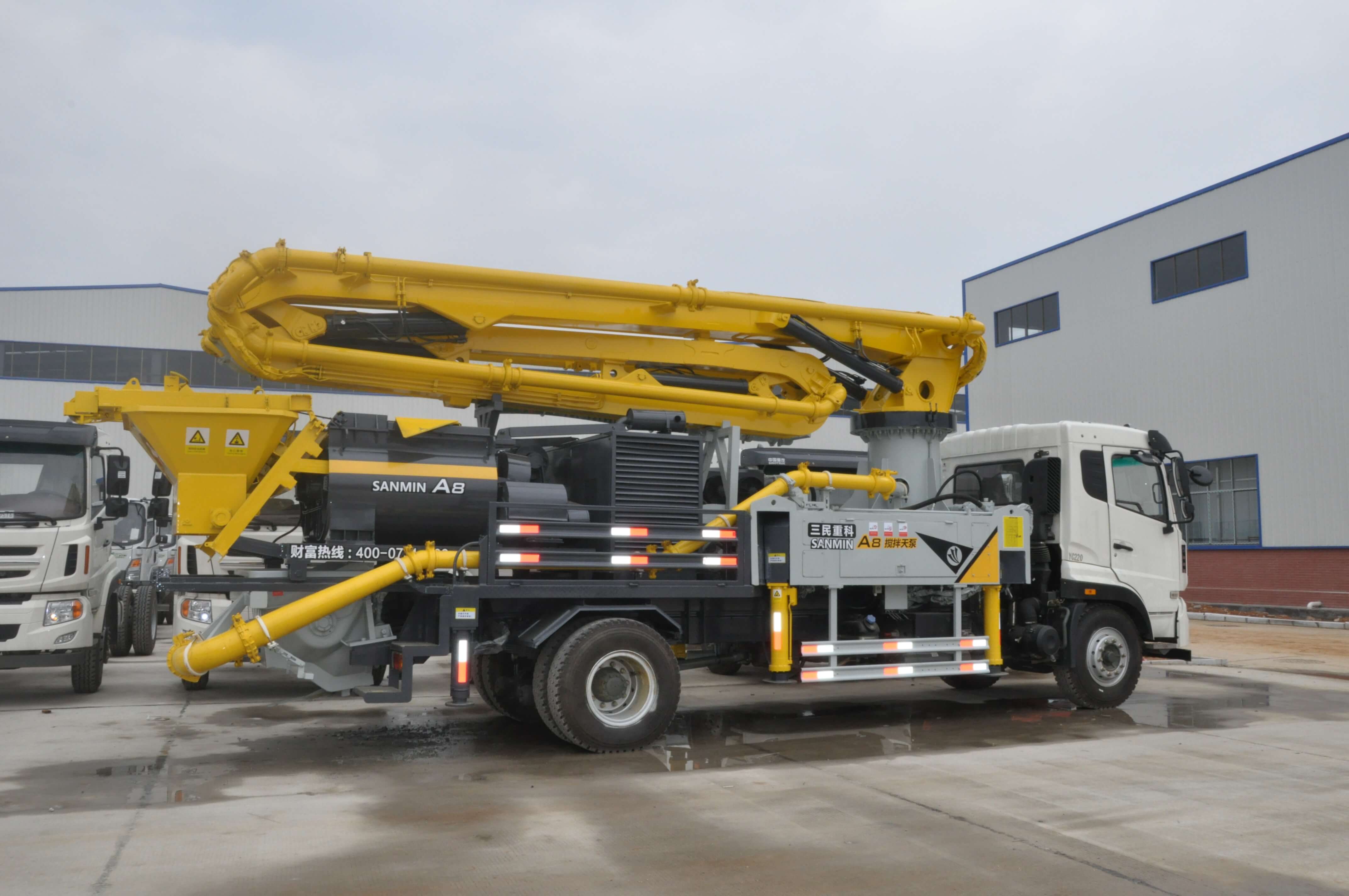攪拌泵車是三民重科研發(fā)一款新型的混凝土泵車,由強制攪拌機與混凝土泵車組成的,可以實現(xiàn)自動上料、攪拌、泵送為一體,真正做到了機械化施工,此泵車適用于中小型施工作業(yè),填補小型,野外,分散等混凝土施工的空白,采用的是強制式雙臥軸攪拌機。