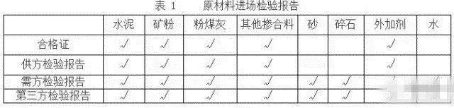 原材料進(jìn)場(chǎng)檢驗(yàn)資料見(jiàn)表1。檢驗(yàn)報(bào)告的項(xiàng)目須符合標(biāo)準(zhǔn)的要求。